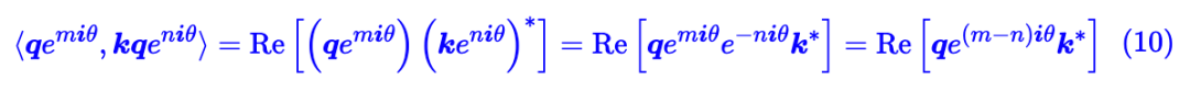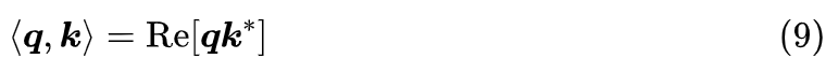 笔者一开始也是这样想的,很遗憾,这是错的。错在哪里呢?在一维 RoPE 中,我们利用了内积的复数表示: