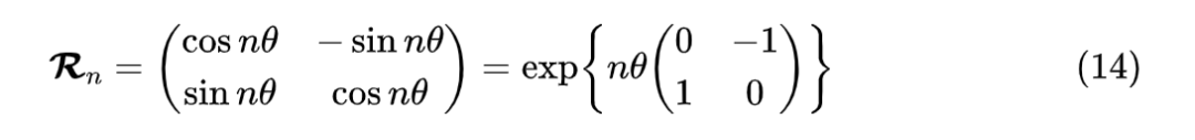 为什么能够将 RoPE 跟矩阵指数联系起来呢?因为一维的 RoPE 存在比较简单的指数表达式: