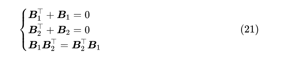 然而, 与 可交换,意味着 、、 和 都可交换,但是上述两个约束只能保证 和 可交换,不能保证后两者的交换性,所以我们需要把它作为约束条件补充上去,得到: