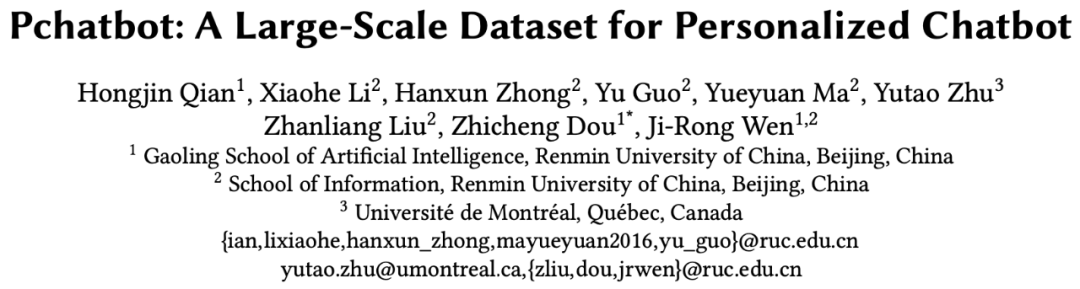 SIGIR 2021 | Pchatbot: 大规模个性化聊天机器人数据集