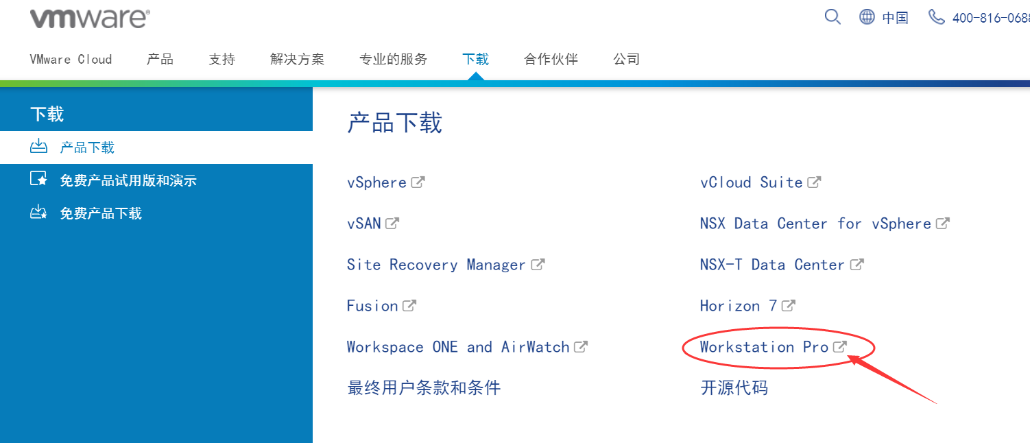 首先我们访问官网地址https://www.vmware.com/cn.html