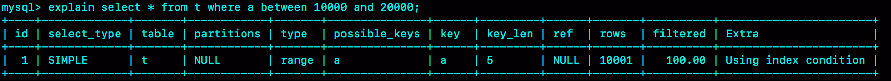 select * from t force index(a) where a between 10000 and 20000;/*Q2*/