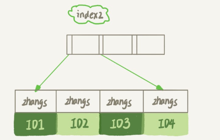 - 取 index2 上刚刚查到的位置的下一条记录,发现仍然是’zhangs’,取出 ID2,再到 ID 索引上取整行然后判断,这次值对了,将这行记录加入结果集;