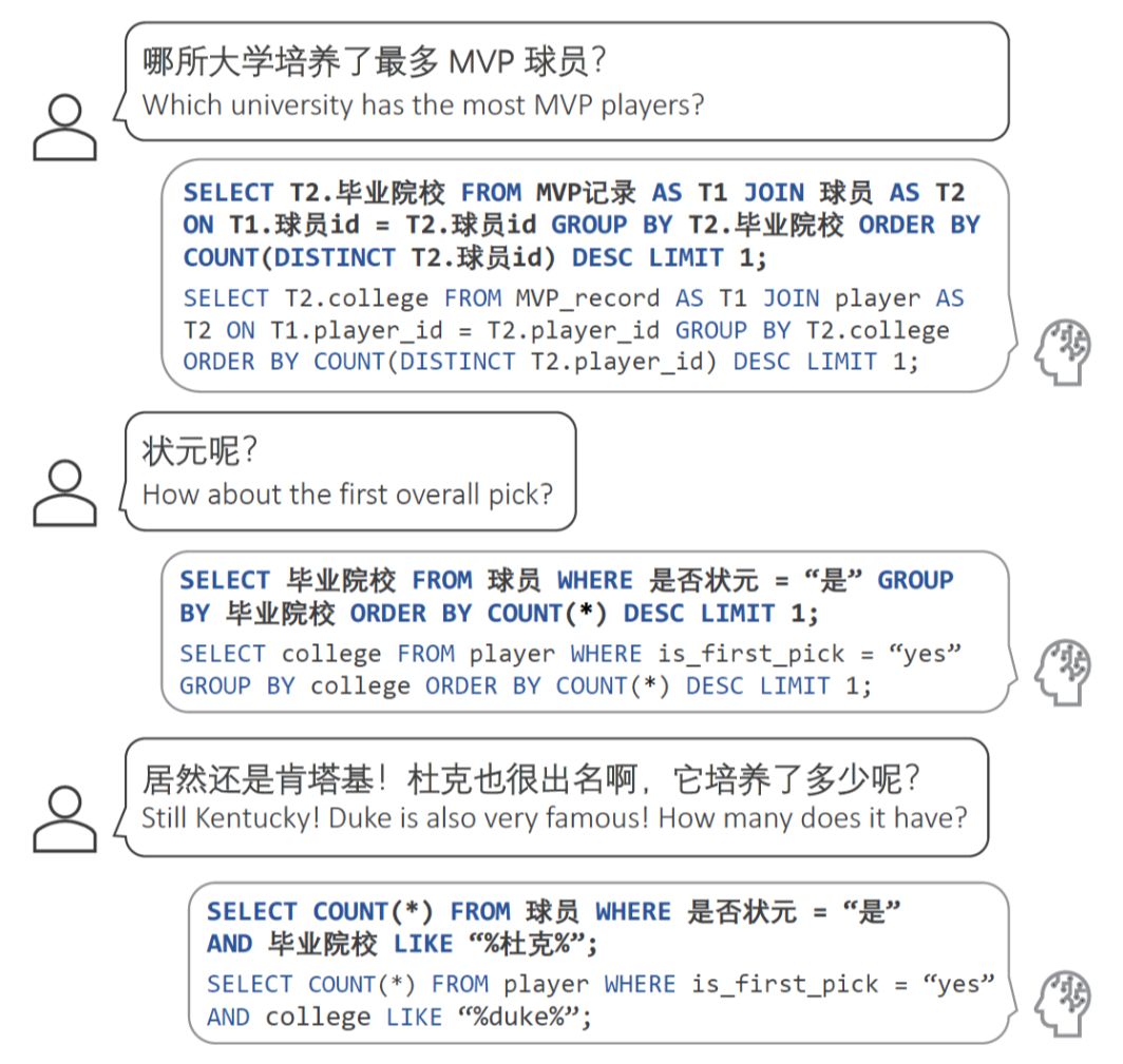 在实际场景,用户往往会围绕一个感兴趣的问题持续发问,直到从数据库中获得想要的信息。而以往的 Text2SQL 多轮数据集没有中文,仅有的英文数据集 Sparc [1] 和 CoSQL [2] 又包含了很多上下文独立的样本,且部分数据存在标注混乱。