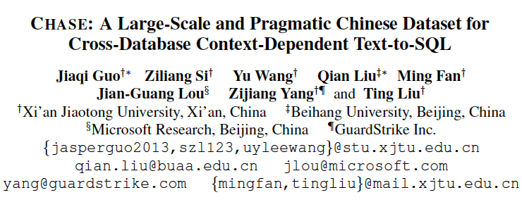 鉴于以上不足,微软亚洲研究院联合北航和西安交大,发布了最新的 Text2SQL 数据集 CHASE,它有以下特点: