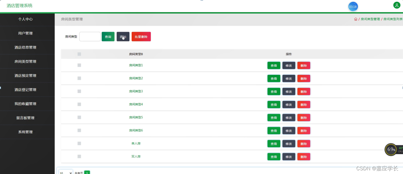 房间类型管理:通过列表可以获取房间类型信息,进行查看、修改或删除操作,如图5-11所示。