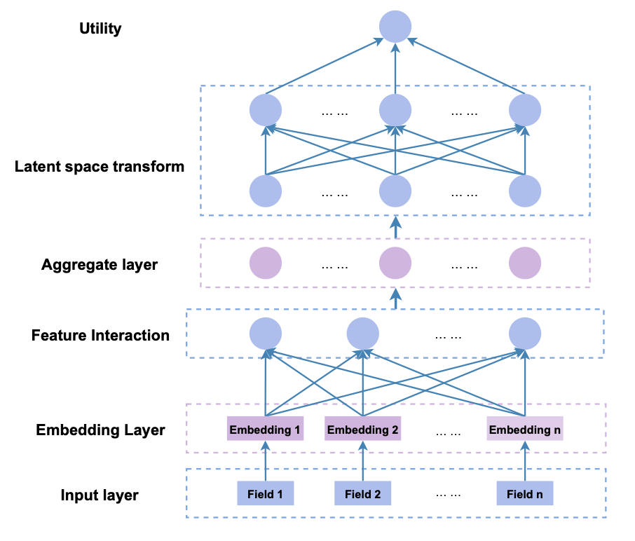 在这项工作中,作者使用经济学中的离散选择模型重新定义了 CTR 预测问题,并提出了一个基于自注意力机制的通用神经网络框架。发现大多数现有的 CTR 预测模型与本文提出的通用框架一致。作者还检查本文提出的框架的表达能力和模型复杂性,以及对一些现有模型的潜在扩展。最后,本文通过公共数据集上的一些实验结果来展示和验证作者的见解。