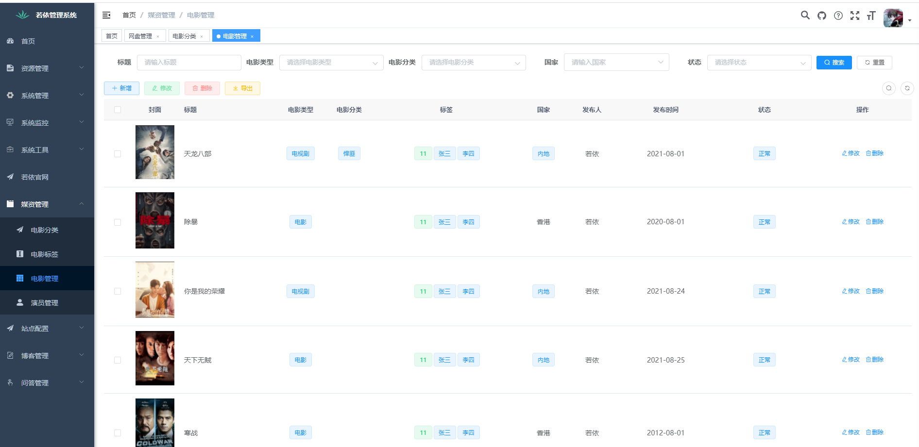 本项目基于vue前、后端分离开源框架打造一款媒资视频电影系统。