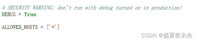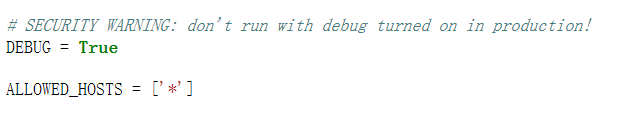 下的ALLOWED_HOSTS=['*']添加‘*’就可以解决显示不出来的问题。