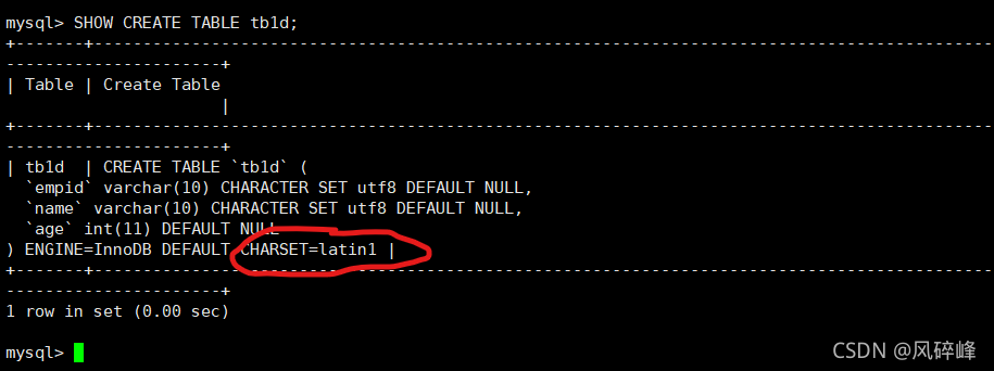 1、查看所建表的编码格式