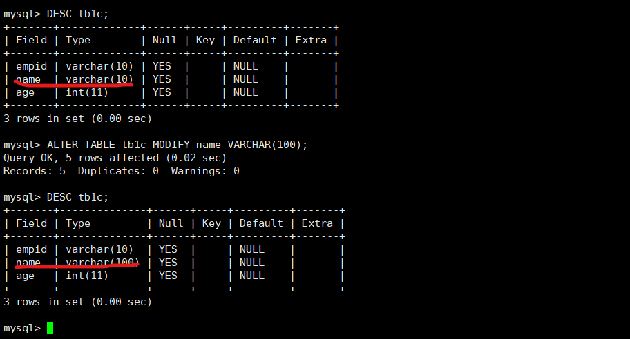 9、修改列结构的定义