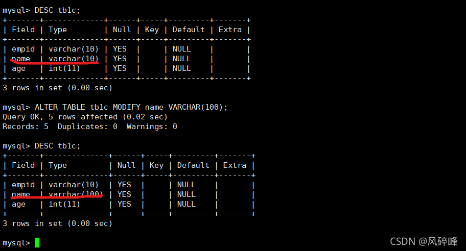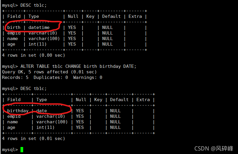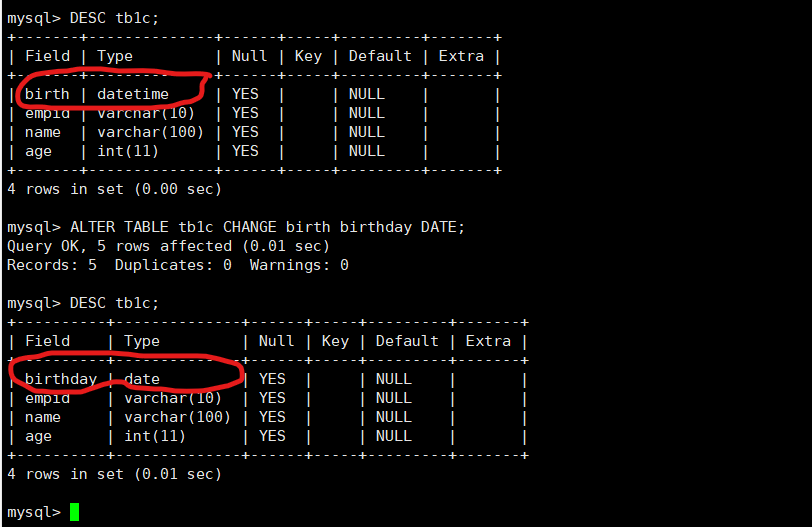 6、修改列名和数据类型