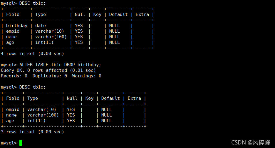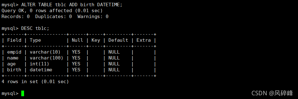四、MySQL的ALTER TABLE命令的使用
