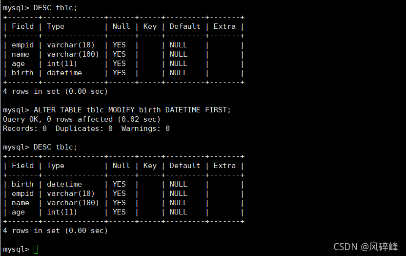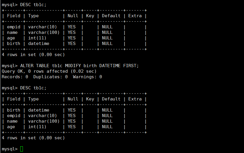 5、修改列的位置
