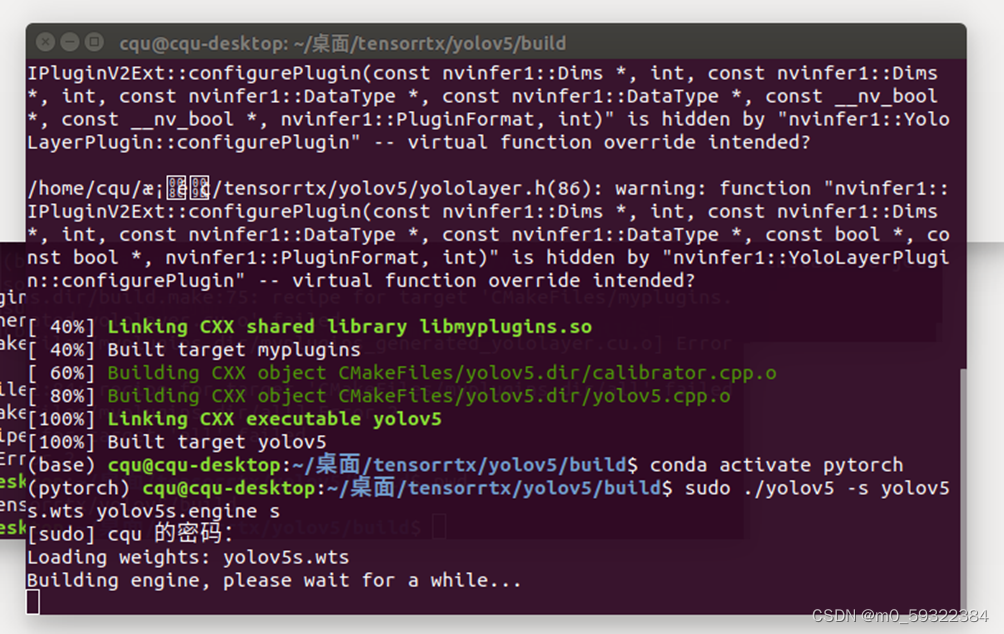 sudo ./yolov5 -s yolov5s.wts yolov5s.engine s