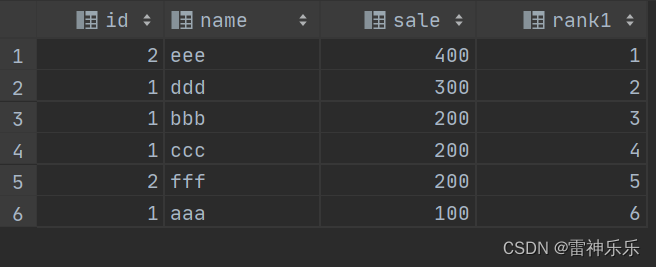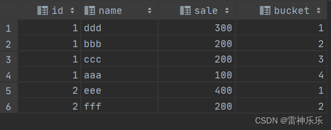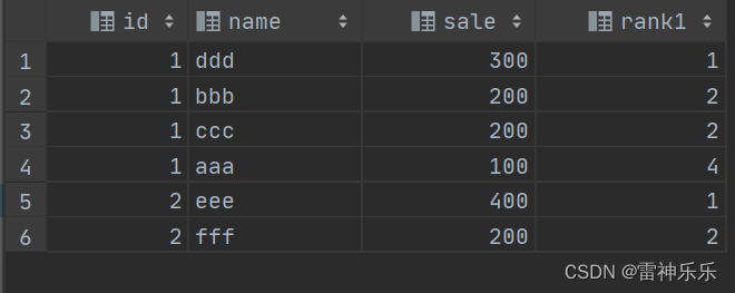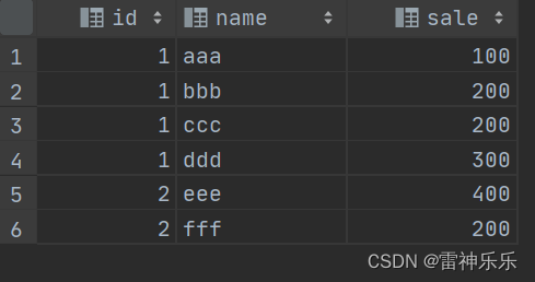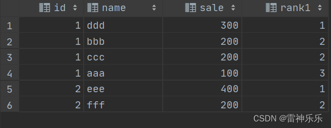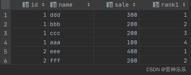 示例1:按照id分组进行sale字段的排名,并且取sale排名的第3个
