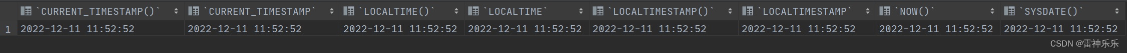 SELECT CURRENT_TIMESTAMP(), CURRENT_TIMESTAMP, LOCALTIME(), LOCALTIME, LOCALTIMESTAMP(), LOCALTIMESTAMP, NOW(), SYSDATE();
