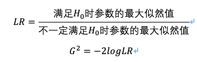 通常所说的χ2检验实际上是指Pearsonχ2。似然χ2是与Pearsonχ2齐名的一种检验方法,该检验的思想是先确定在无效假设H0为真的条件下,似然函数所能达到的最大值;再确定在H0不一定为真的条件下,似然函数所能达到的最大值。似然比χ2就是基于二者之比。其计算公式如下: