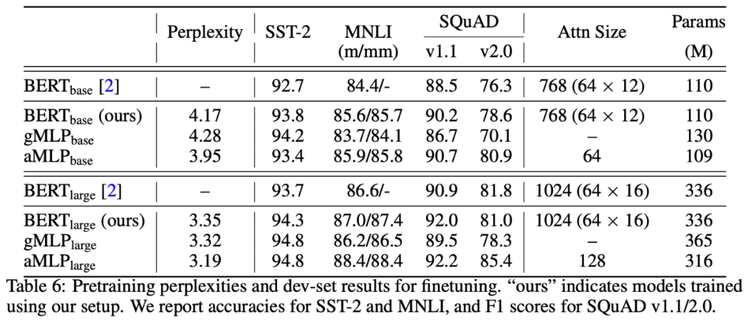 ▲ gMLP,aMLP的NLP部分实验结果