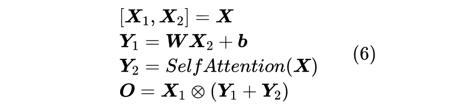 简单来说,就是将收入沿着特征维度分为两半,然后将其中一半传入 MLP-Mixer,作为另一半的 gate。而 aMLP 则是将 MLP-Mixer 和一个简单的单头 Self Attention 结合来作为 gate:
