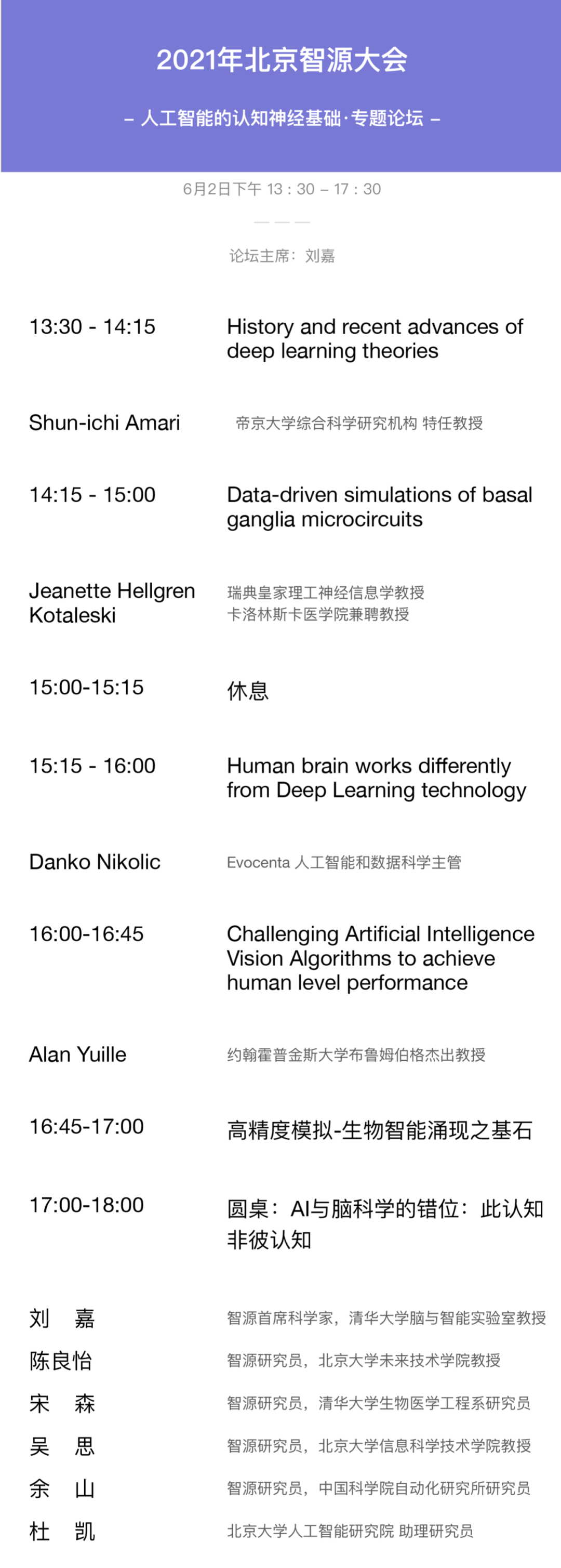 「人工智能的认知神经基础」专题论坛详细议程如下: