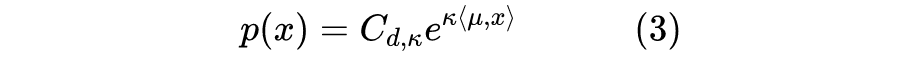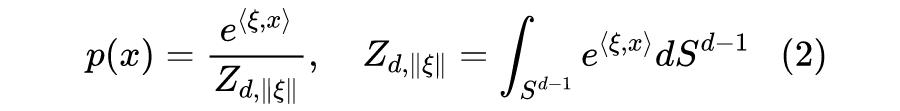 vMF 分布是定义在 d-1 维超球面的分布,其样本空间为 ,概率密度函数则为: