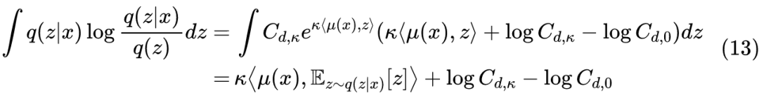 前面我们已经讨论过,vMF 分布的均值方向跟 一致,模长则只依赖于 d 和 ,所以代入上式后我们可以知道 KL 散度项只依赖于 d 和 ,当这两个参数被选定之后,那么它就是一个常数(根据 KL 散度的性质,当 时,它必然大于 0),绝对不会出现 KL 散度消失现象了。