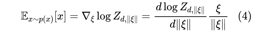 从归一化因子 的积分形式来看,它实际上也是 vMF 的母函数,从而 vMF 的各阶矩也可以通过 来表达,比如一阶矩为: