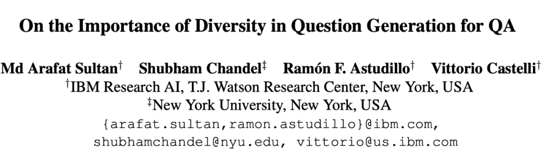 TL;DR:问题生成(Question Generation, QG)的重要应用之一是辅助提升 QA 模型的性能,那么问题生成的多样性会在多大程度上帮助下游 QA 任务?本文通过实验证明了促进 QG 多样性对 QA 模型提升的有效性。