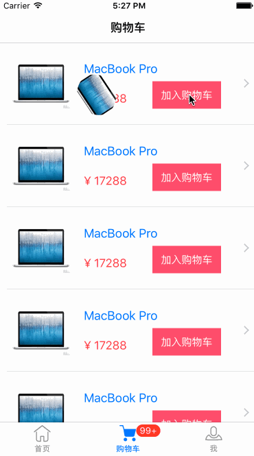 在 WBShoppingCartVC 中使用购物车动画, .m 如下