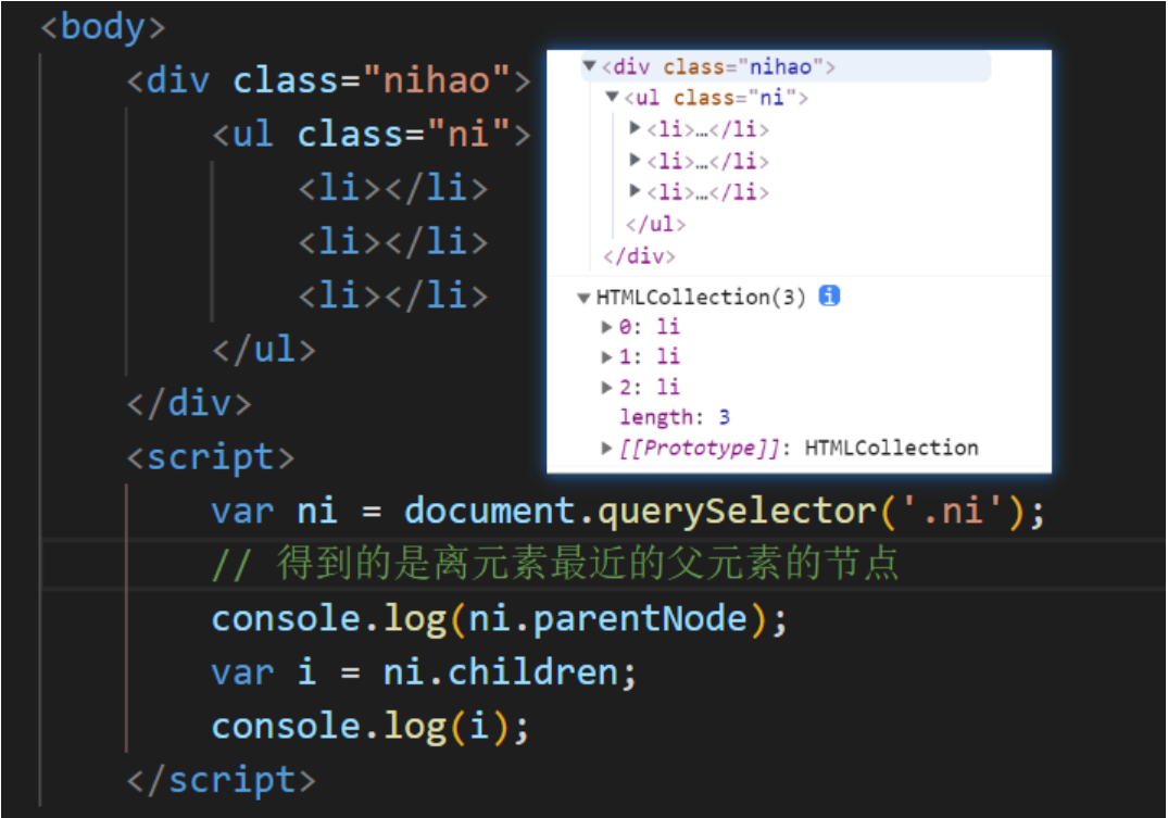 对于子节点是一个集合来说返回的是一个伪数组,假如ul里面有4个li就会返回9个节点,因为里面还存在5个txet节点(空格也算是节点),集合里面包含了所有的节点,包括元素节点、文本节点,如果只想要获得里面的元素节点,就需要处理