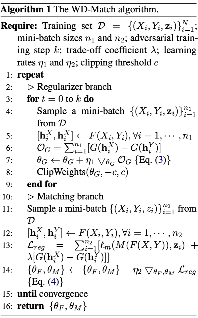 在训练的过程中,作者分别使用该损失函数和匹配损失函数进行训练,在训练某一模块的时候,固定其他模块的参数,具体的训练流程如下: