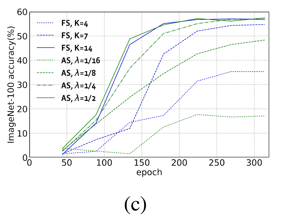 的时候,自适应采样方法在 ImageNet-100 验证集上的分类精度已经和固定采样方法的分类精度几乎一样高。在图 3(d)中,我们看到与采用 K=14 的固定采样方法相比,采用