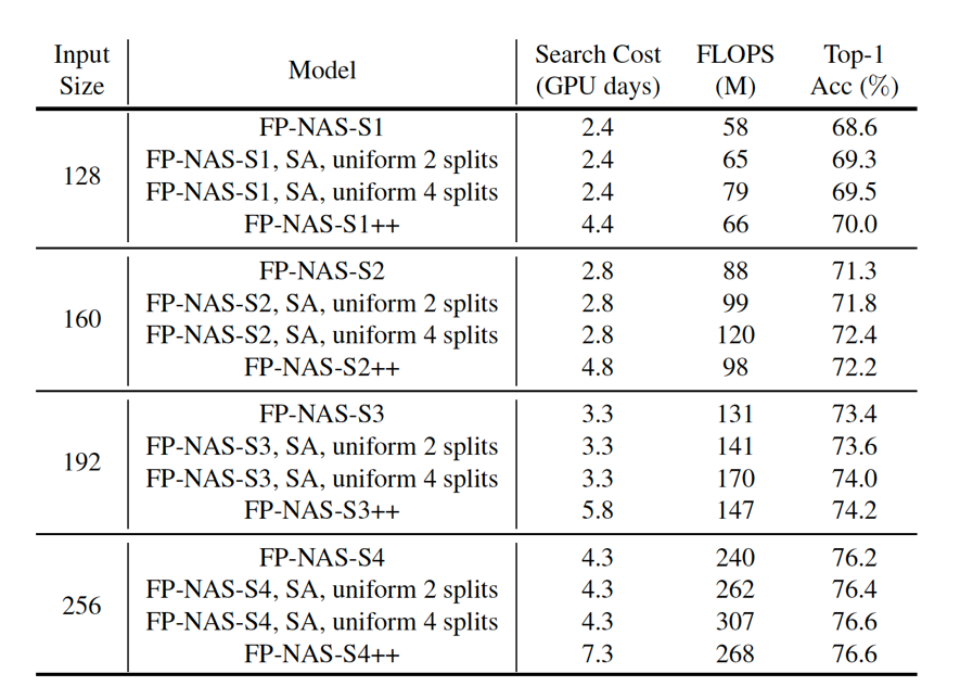 FP-NAS 通过把 Squeeze-Excite 模块替换成 Split-Attention 来扩大搜索空间,同时证明单独搜索各个模型层的 Attention splits 的必要性。