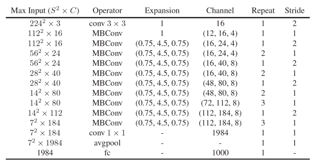 FBNetV2-F-Fine space。在这个空间中,每个 MBConv 块允许使用不同的架构。