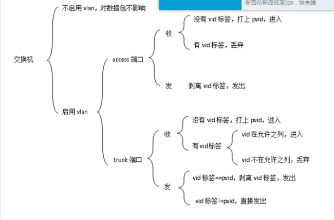 机,若vlan ID 不在trunk 端口的放行vlan 中,丢弃该帧。