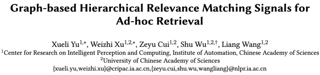 在本文中,作者介绍了一种基于图的分层相关性匹配方法 GHRM,通过利用层次图神经网络对不同粒度的匹配信号进行建模,我们可以准确地捕获细微和通用的层次交互匹配信号。在两个代表性的 ad-hoc retrieval 数据集上的实验证明了 GHRM 在各种基准上的有效性,这验证了将基于图的层次结构匹配信号应用于 ad-hoc retrieval 的优势。