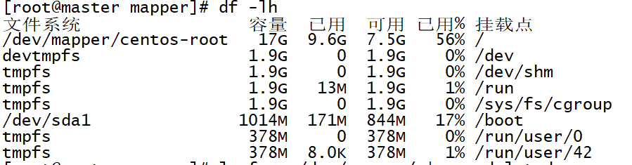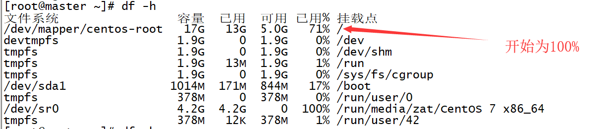 经过长时间的寻找,终于发现这种情况对应的原因:linux下输入df -h查看系统的磁盘信息情况: