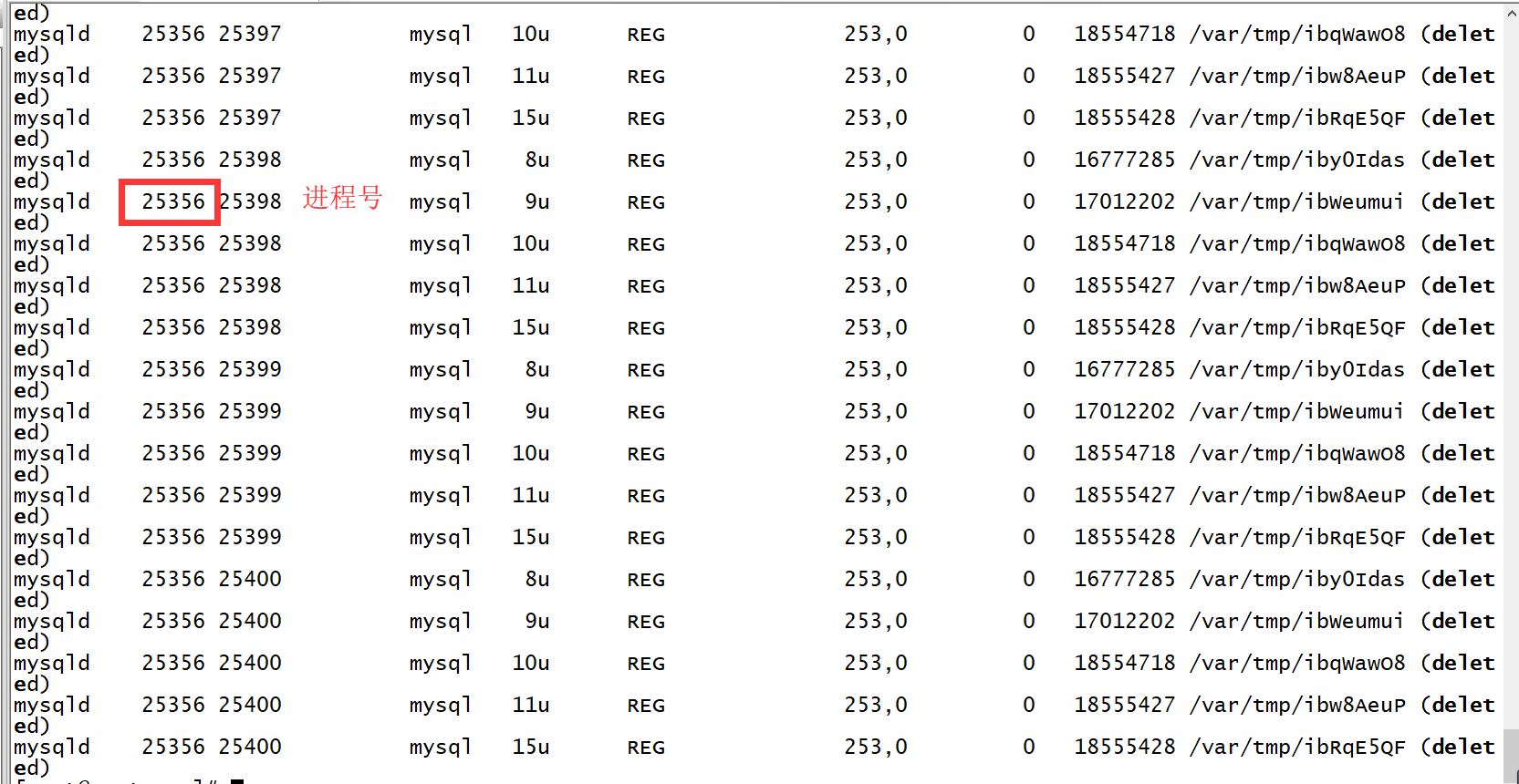 (1)使用lsof |grep delete查看对应的进程号;