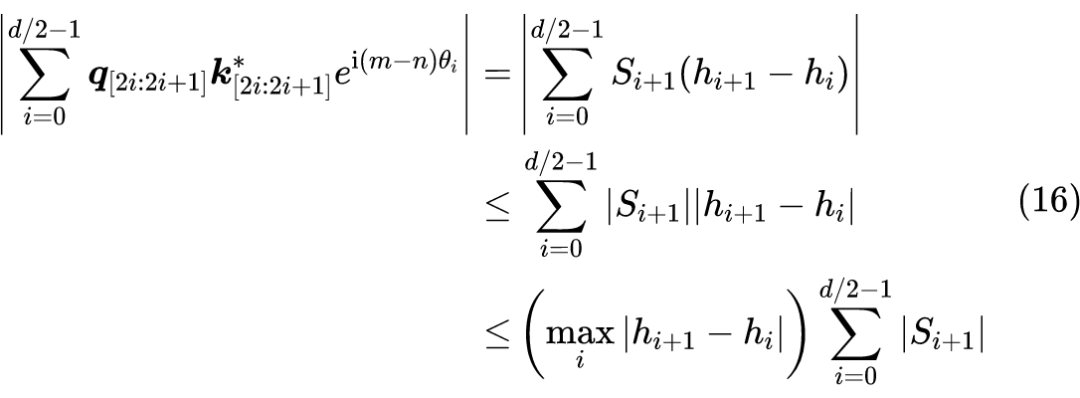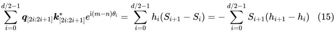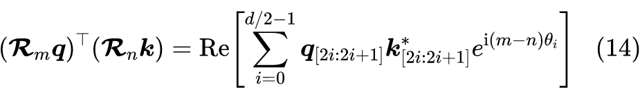 具体证明如下:将 两两分组后,它们加上 RoPE 后的内积可以用复数乘法表示为: