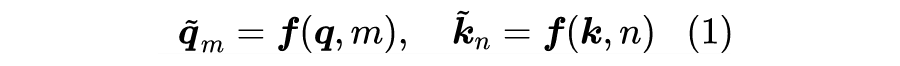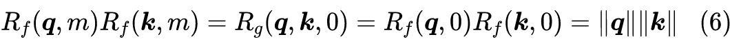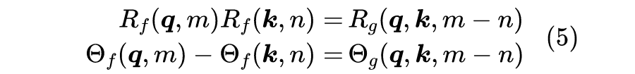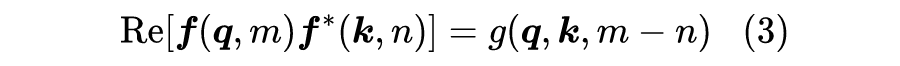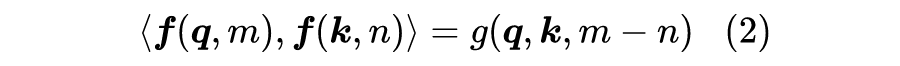 也就是说,我们分别为 设计操作 ,使得经过该操作后, 就带有了位置 m, n 的绝对位置信息。Attention 的核心运算是内积,所以我们希望的内积的结果带有相对位置信息,因此假设存在恒等关系: