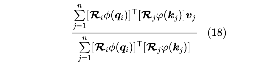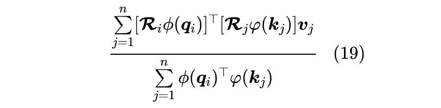 其中 是值域非负的激活函数。可以看到,线性 Attention 也是基于内积的,所以很自然的想法是可以将 RoPE 插入到内积中: