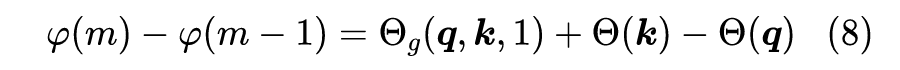 也就是说,给位置为 m 的向量 乘上矩阵 、位置为 n 的向量 乘上矩阵 ,用变换后的 序列做 Attention,那么 Attention 就自动包含相对位置信息了,因为成立恒等式: