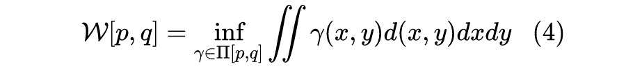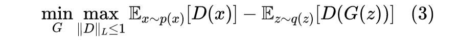 而 JS 散度是 f 散度的一种,所有的 f 散度都具有一个问题,那就是在两个分布几乎没有交集的时候,散度为一个常数,这意味着梯度为零,而我们是使用梯度下降求解的,所以这意味着我们无法很好地完成优化。为此,WGAN [5] 应运而生,它利用 Wasserstein 距离来设计了新的 GAN: