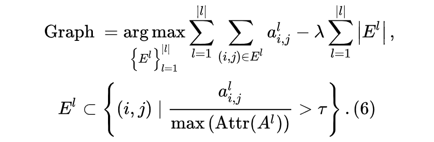 其中 为第 层的边数量, 为两个目标取舍的权重, 用于过滤出相对较大的注意力归因值,实验中为 0.4。