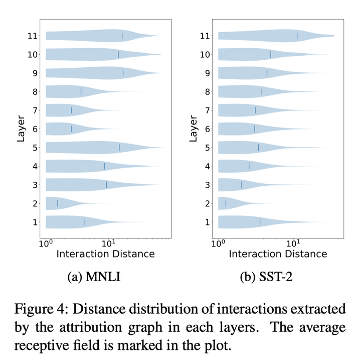 第二点,探究不同层 attention attribution 反映出的感受野(Receptive Field)。这一部分没有得出什么结论,更高的层具有更大的感受野,这是显然的。