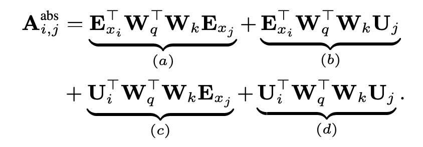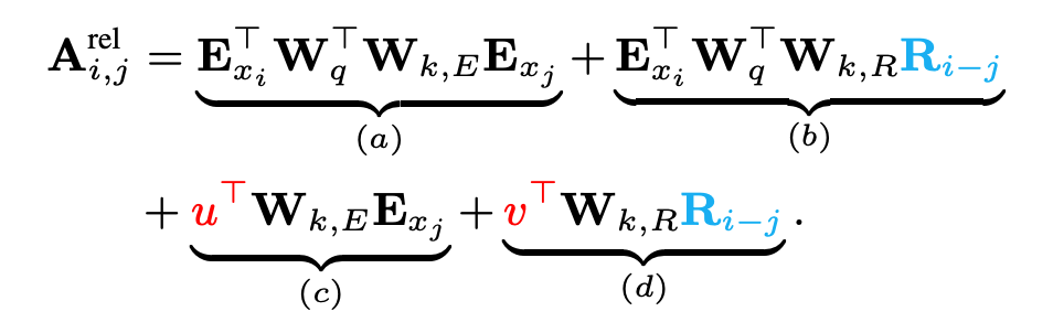 使用两个可学习参数 u 和 v 替代了中的 query i 的位置映射。这里是由于每次计算 query 向量是固定的,不需要编码。