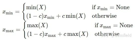 c 是一个常数,PyTorch 中默认为 0.01,也就是最新一次的极值由上一次贡献 99%,当前的 tensor 贡献 1%。