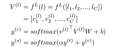 在此基础上,通过一个权重系数和标签的原始 one-hot 表示相加,再通过一个 softmax 进行归一化,就得到了标签的模拟分布表示(因为标签的真实分布表示无法获取)该过程可以表示为如下形式: