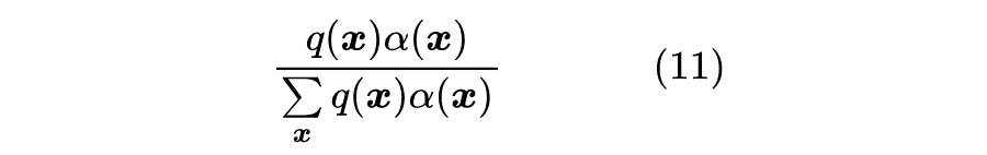 那么,此时采样出来的 真正的概率分布是什么呢?其实也不难,由于样本 被保留下来的概率是 ,因此它的相对概率就是 ,我们只需要将它重新归一化: